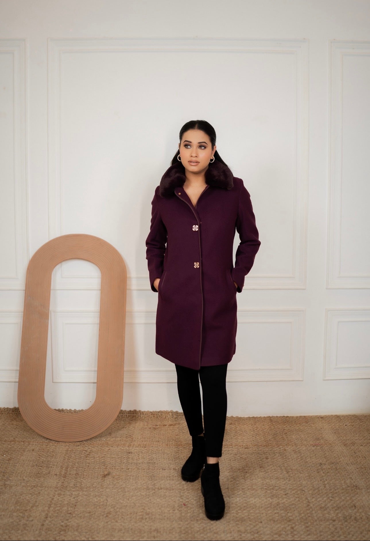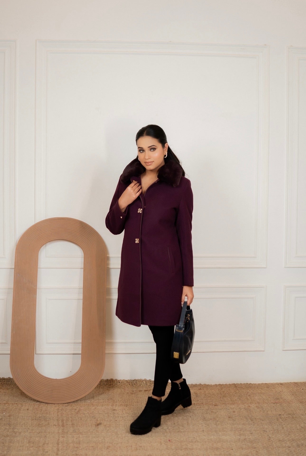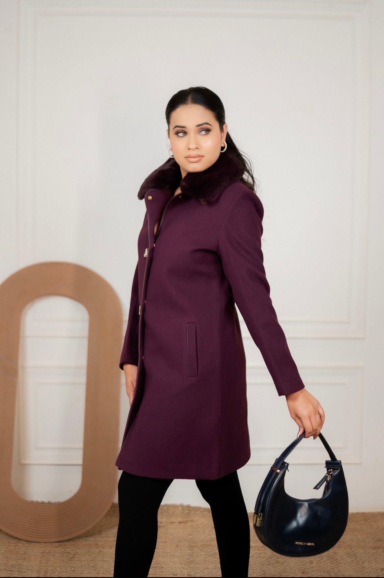 WOMEN COLLAR NECK WITH DETACHABLE FUR COLLAR AND BEAUTIFUL EMBELLISHED COAT
