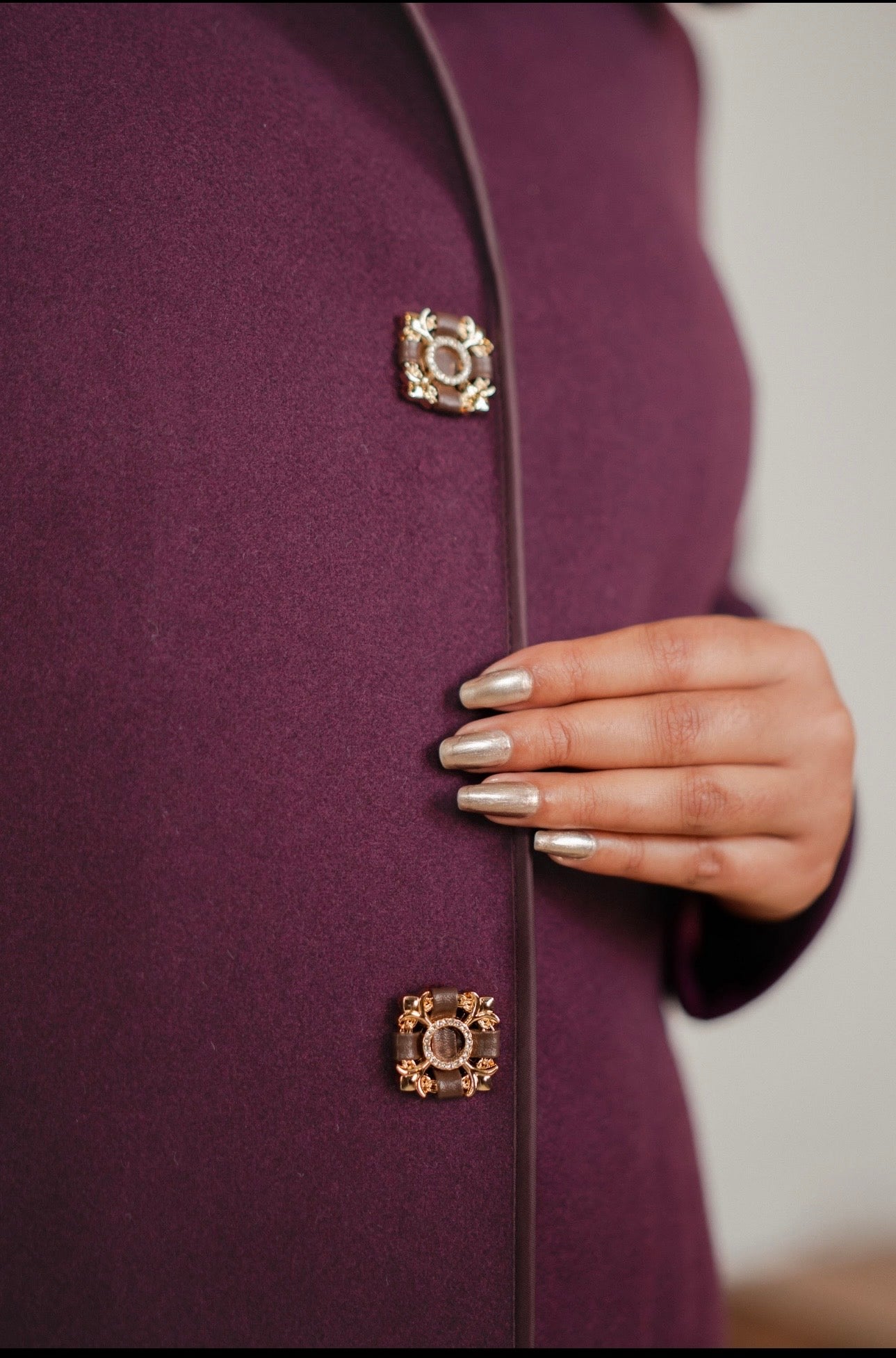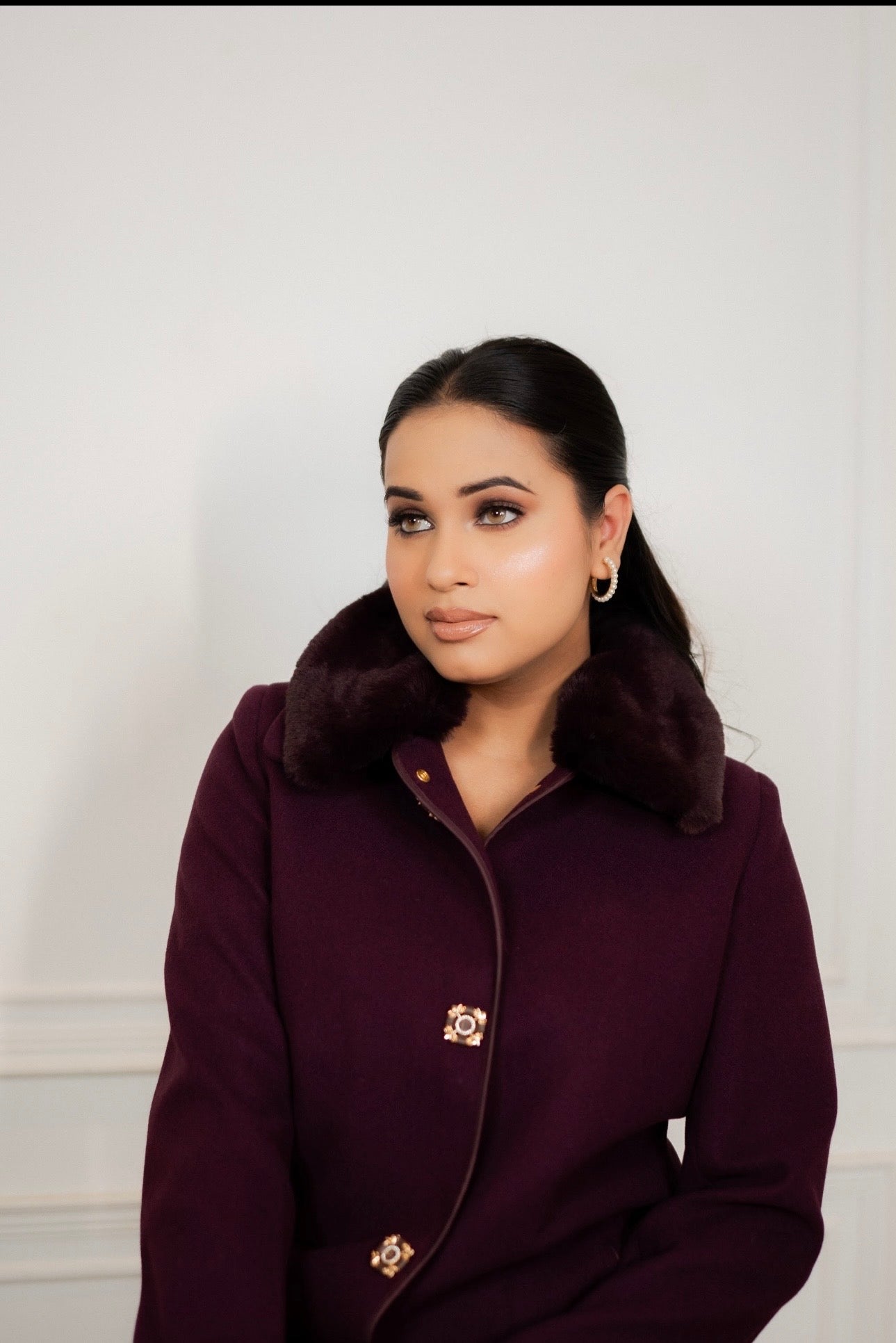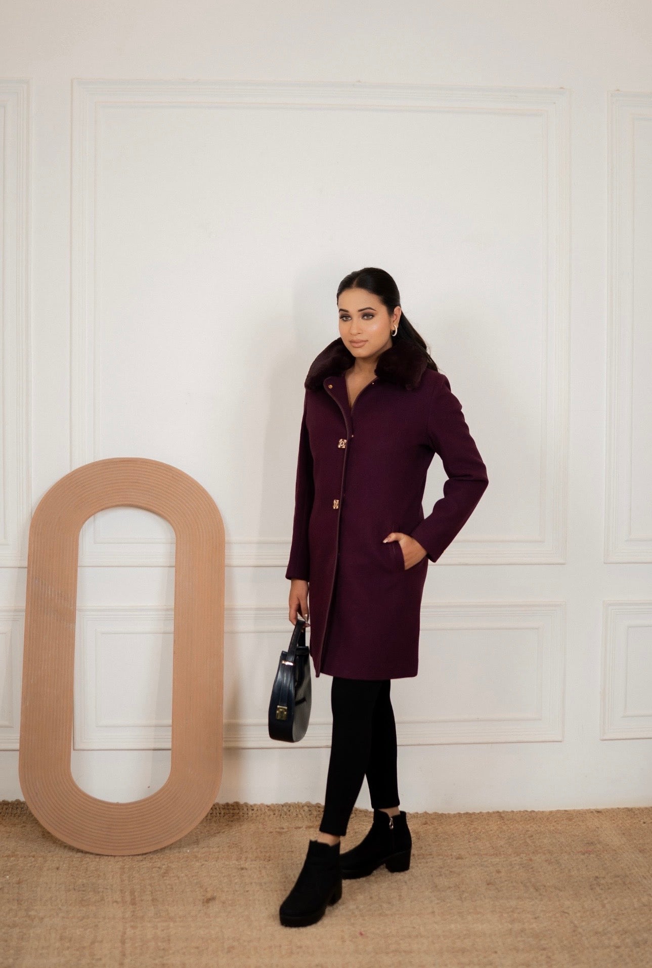WOMEN COLLAR NECK WITH DETACHABLE FUR COLLAR AND BEAUTIFUL EMBELLISHED COAT