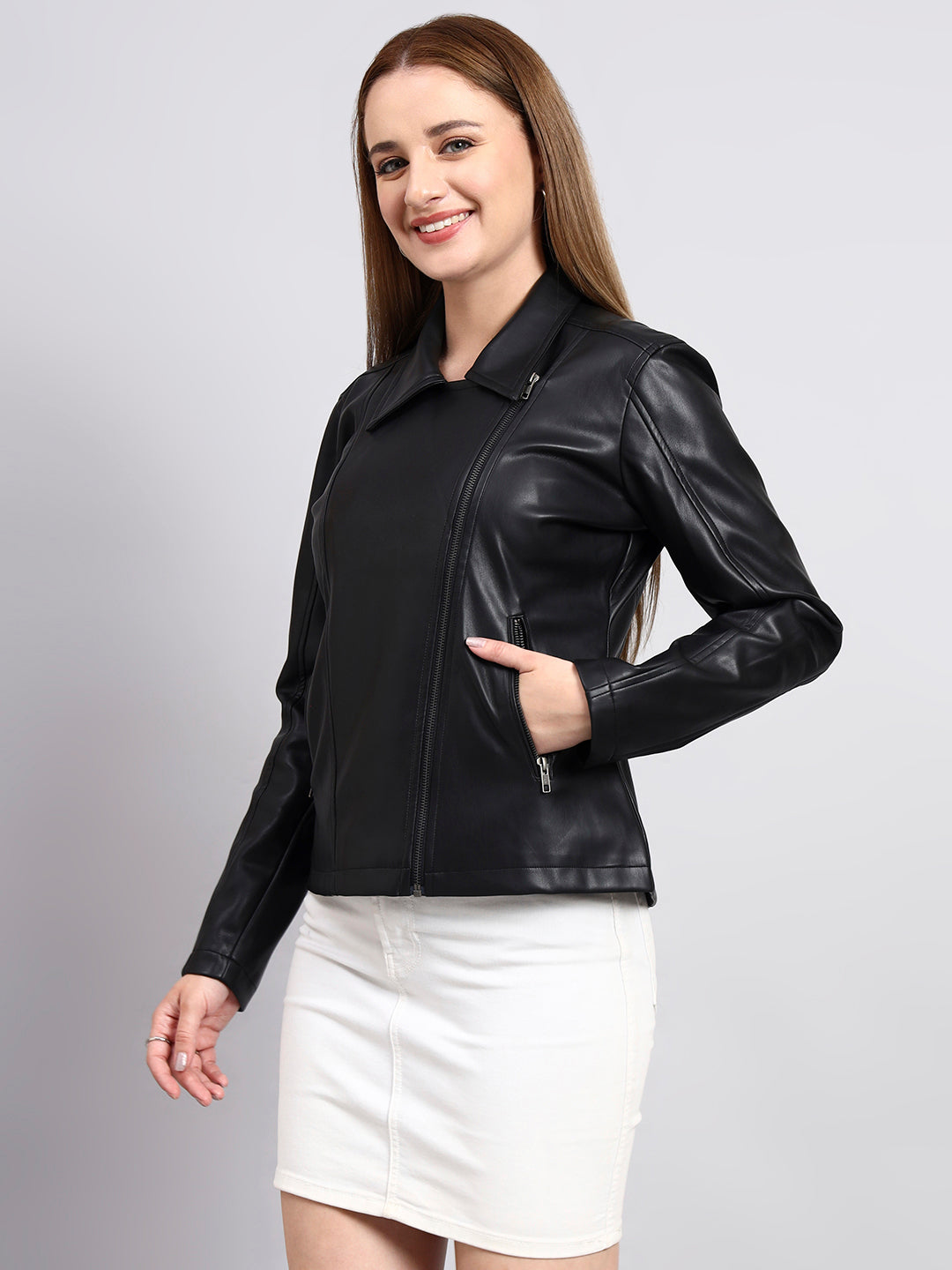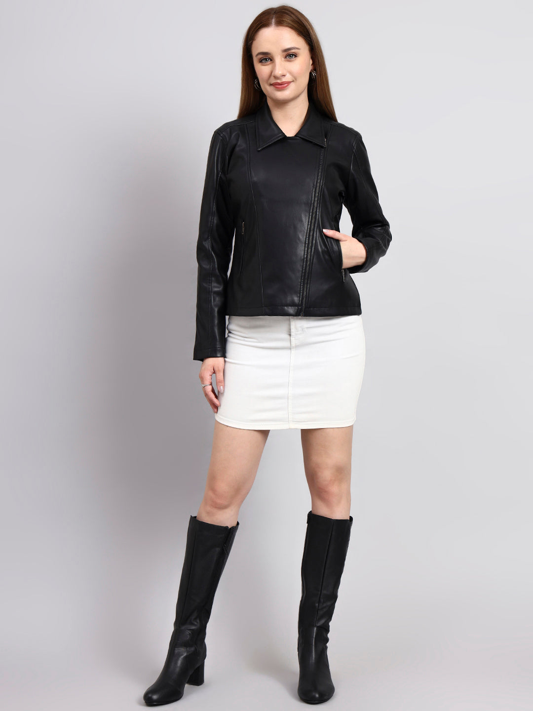 THIS IS A BLACK LEATHER BIKER JACKET SLIM FIT
