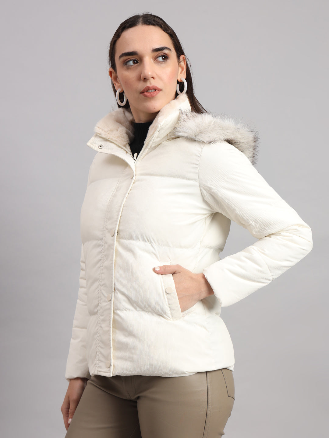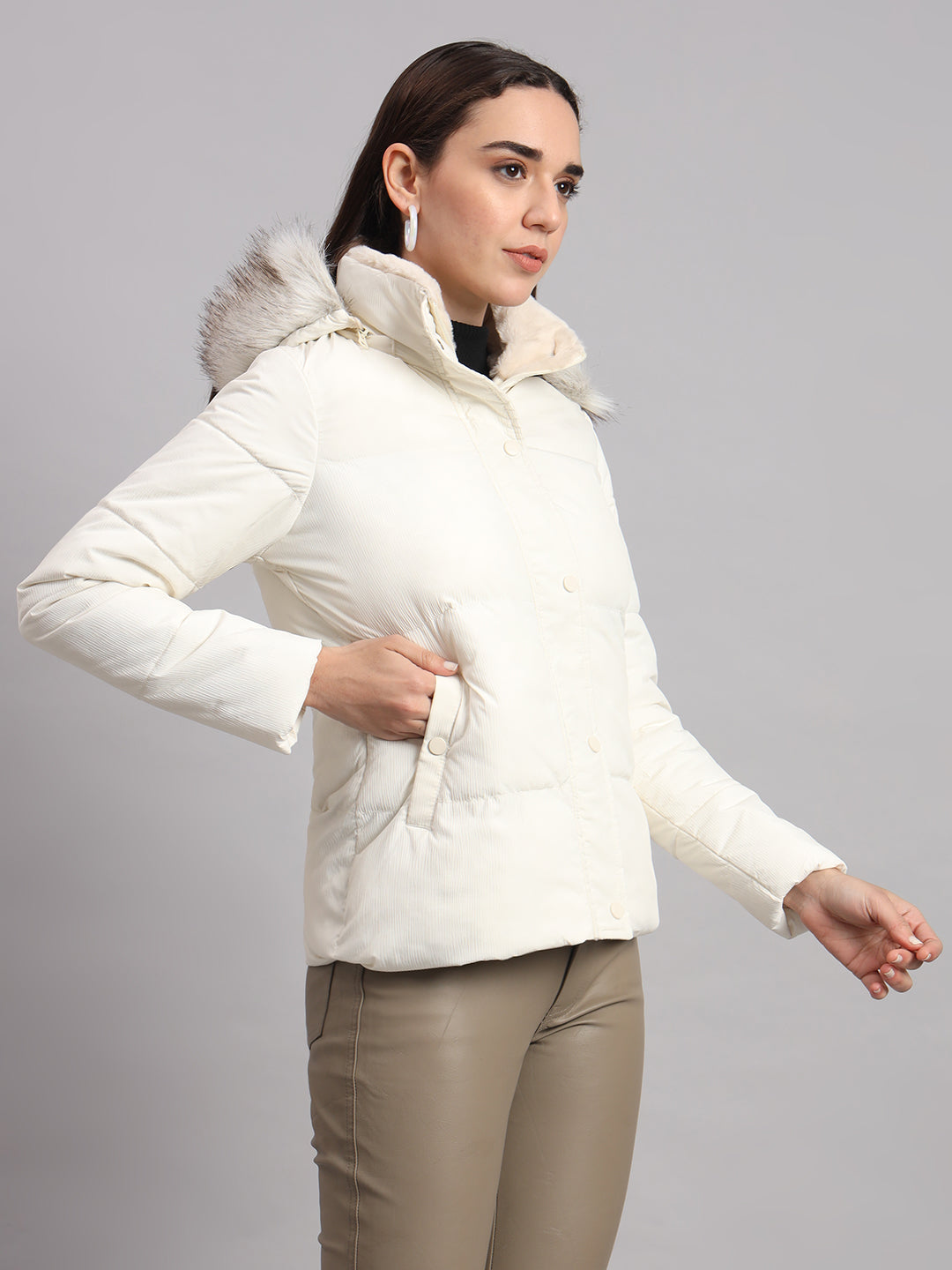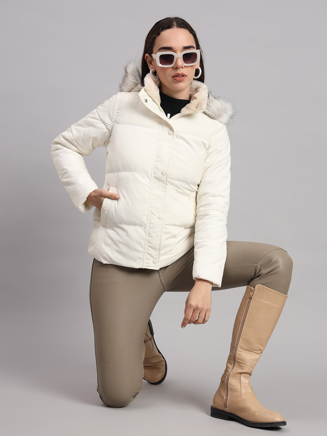SHORT JACKET WITH , SNAP BUTTON PLACKET AND DETACHABLE HOOD FOR A STYLISH WINTER LOOK