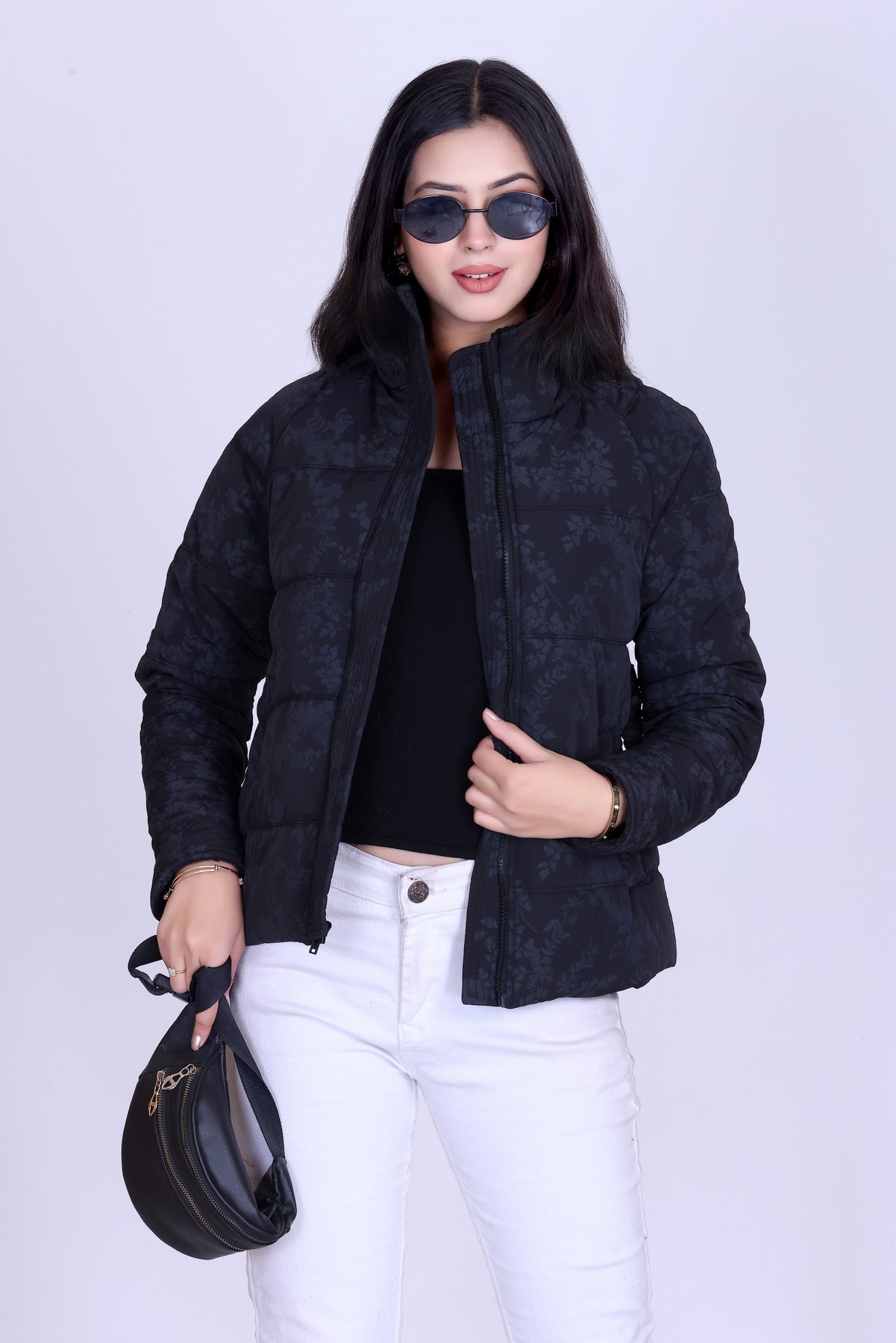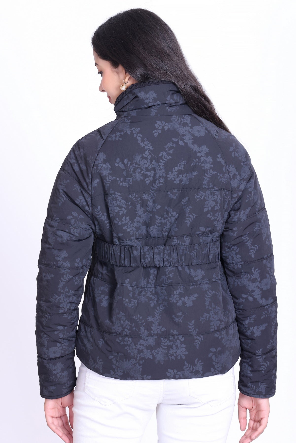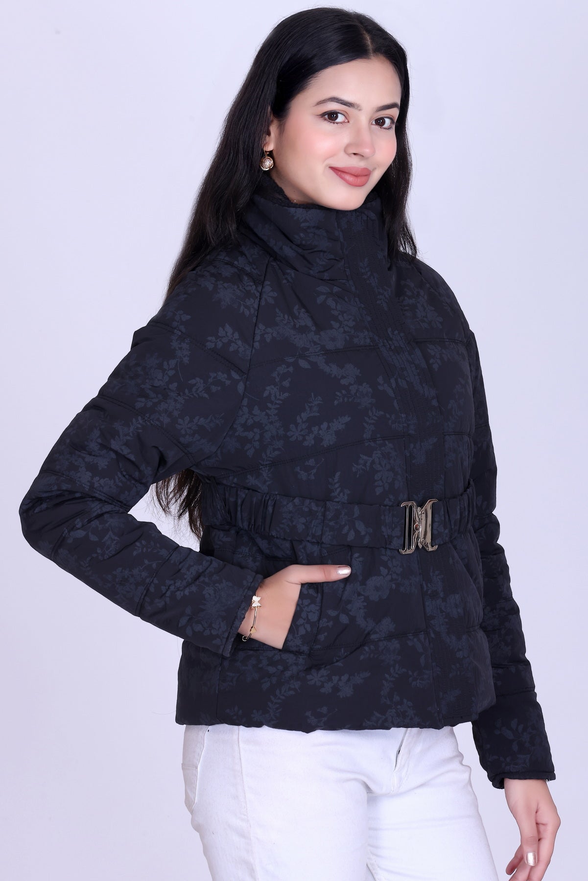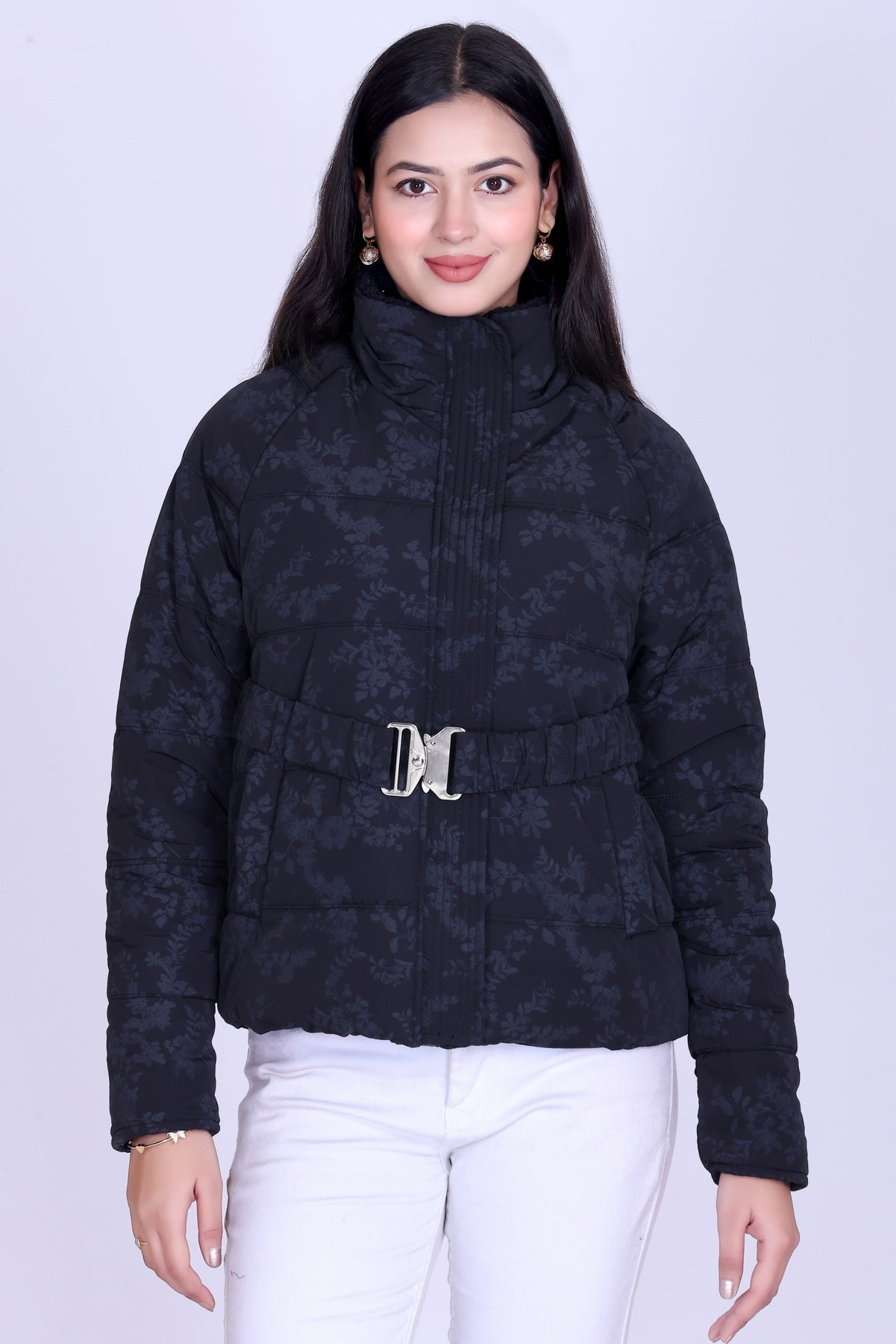 SHORT JACKET WITH AOP PRINT FUR COLLAR , WITH BELT STYLISH WINTER LOOK