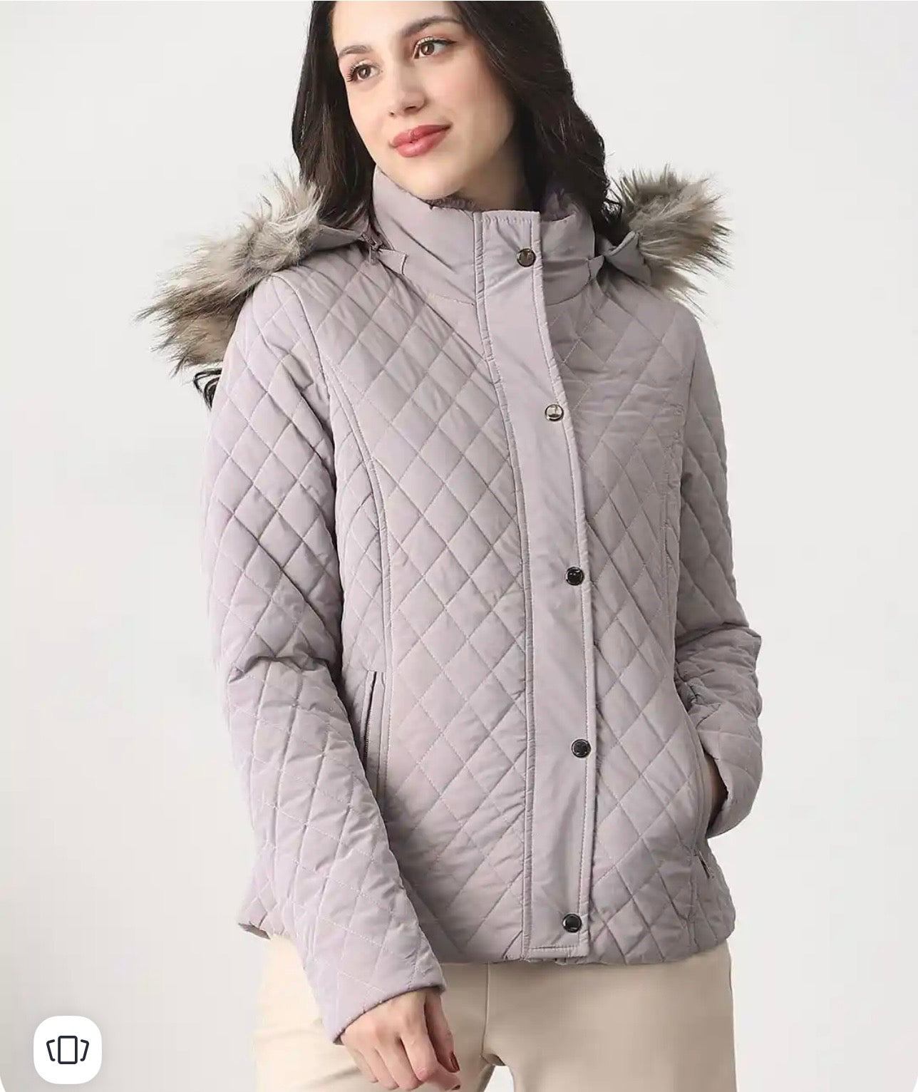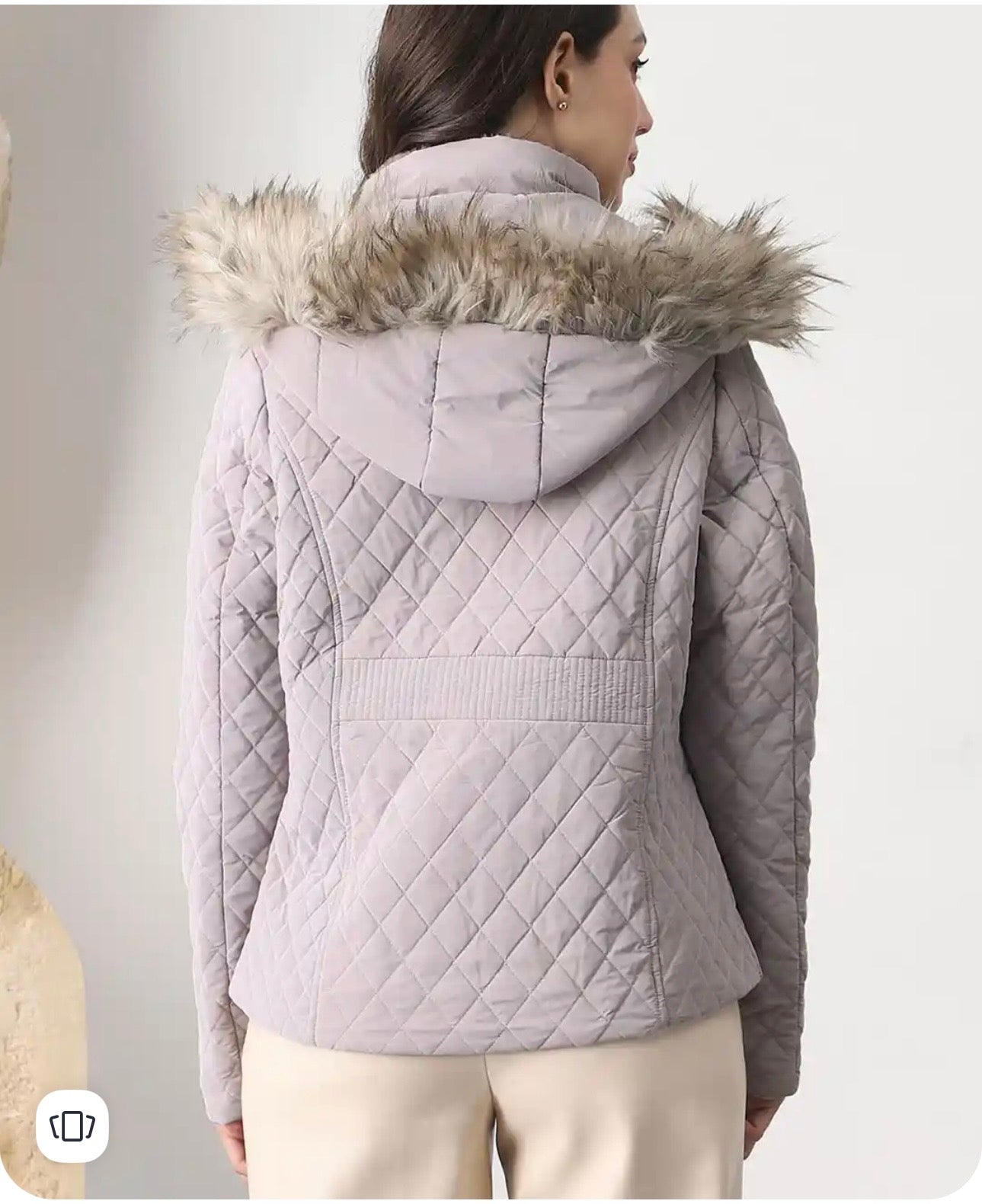 SHORT JACKET WITH CORDUROY AND HIGH STAND COLLAR , SNAP BUTTON PLACKET AND DETACHABLE HOOD GOR A STYLISH WINTER LOOK