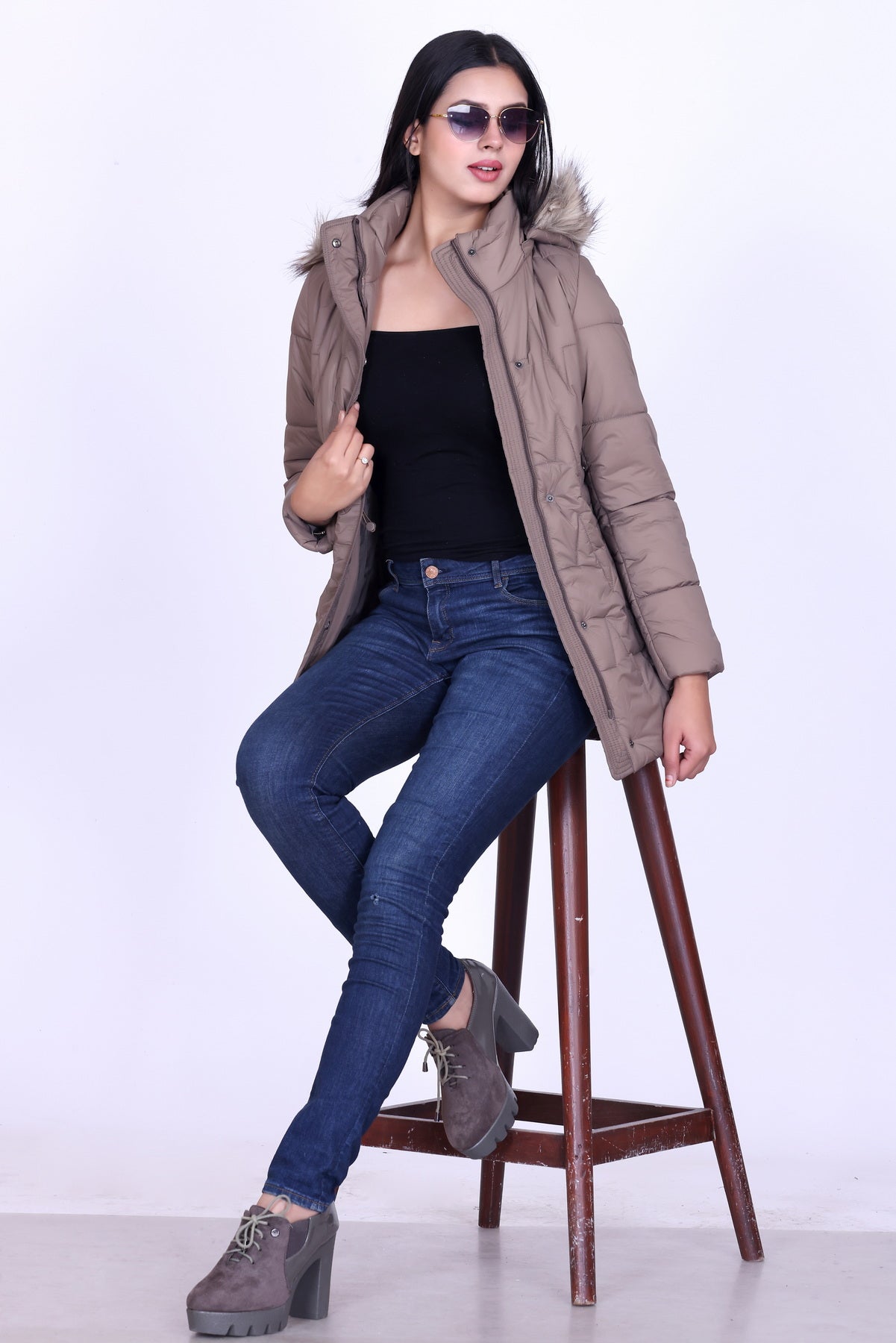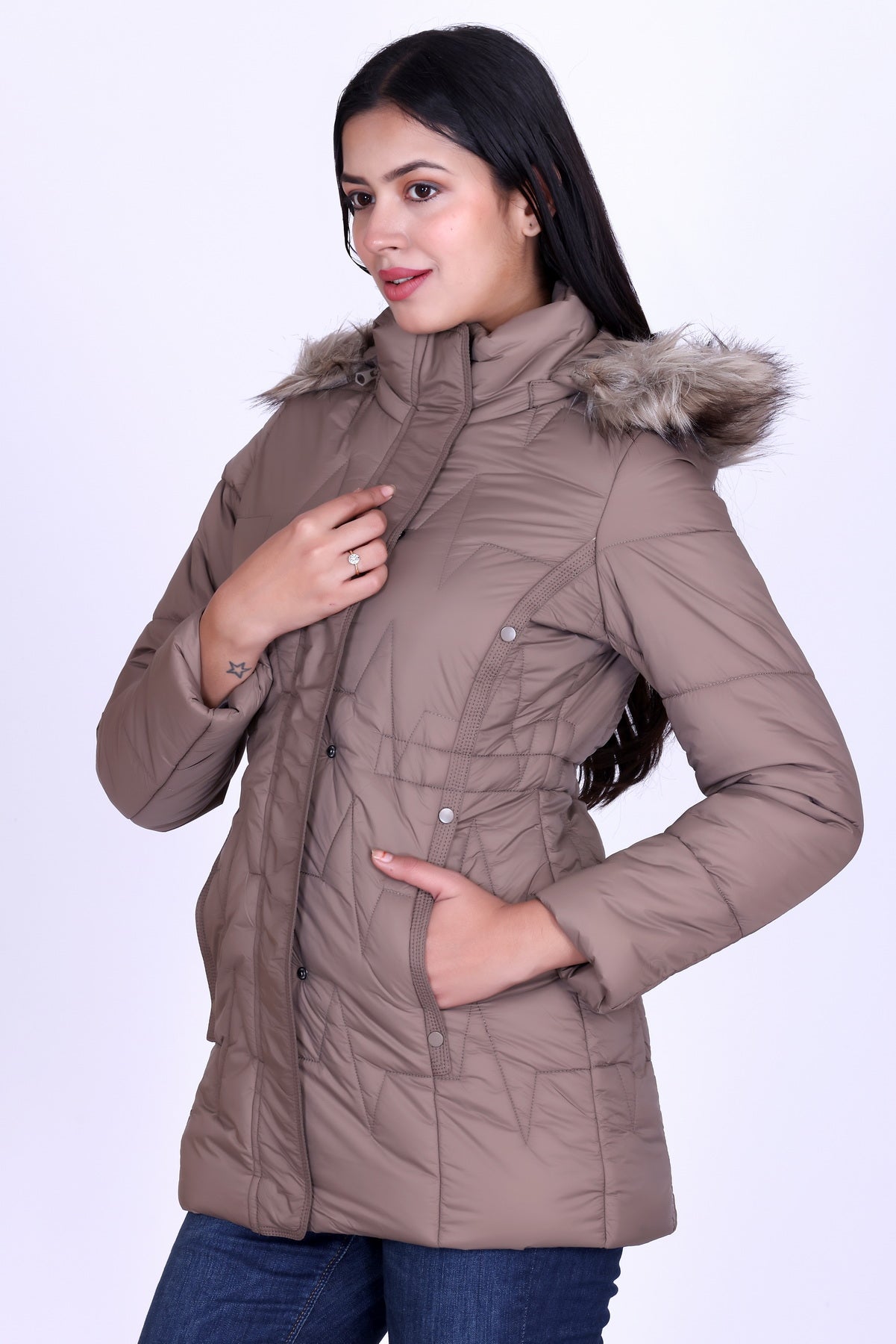 MEDIUM LONG JACKET WITH DETACHABLE HOOD SOFT FABRIC ,