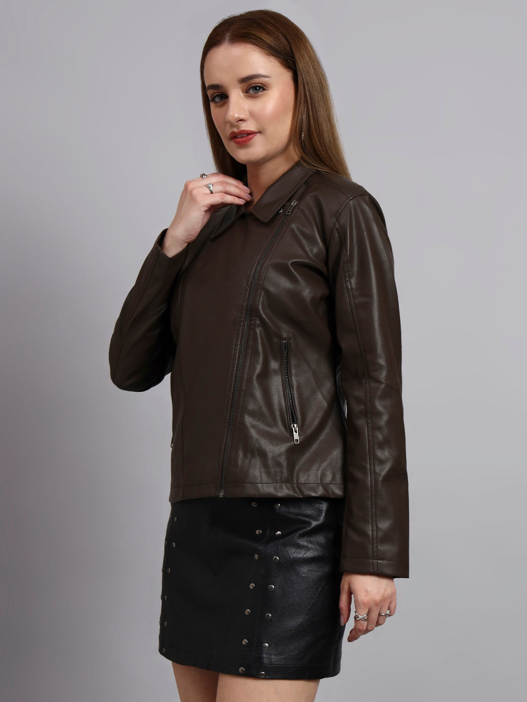 THIS IS A BLACK LEATHER BIKER JACKET SLIM FIT